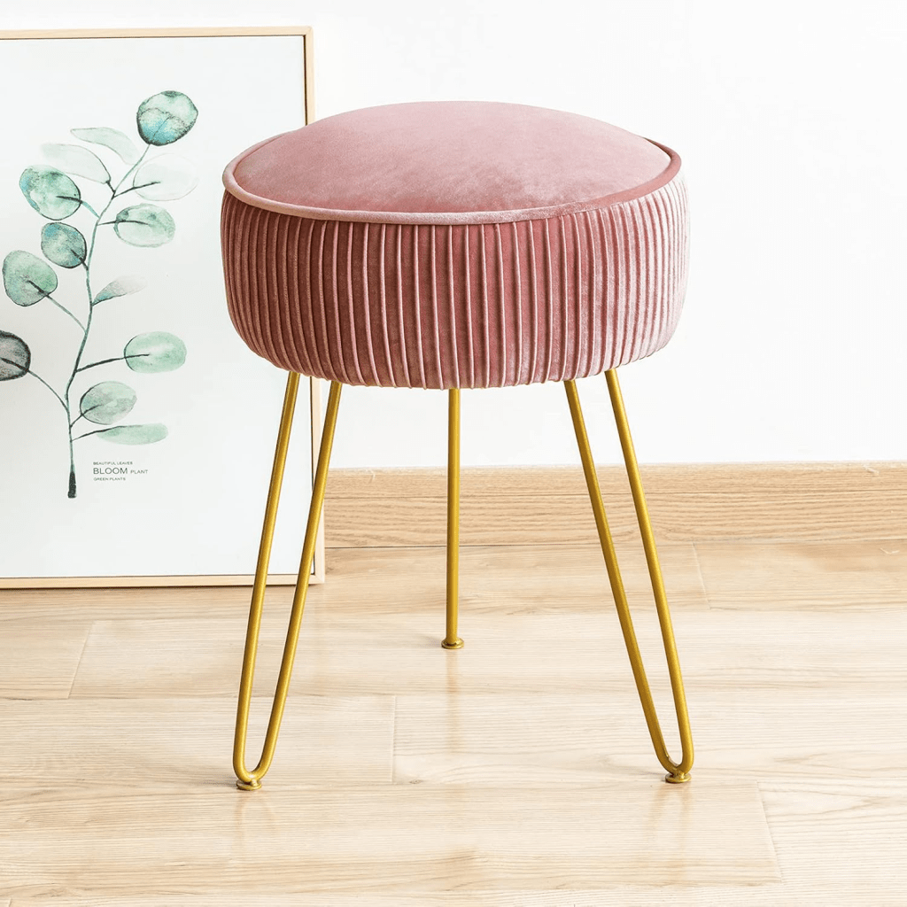 The cute little stool, well that is because I now have to sit down to but pants or socks on because I am old 👵 and will lose my balance and fall! They have all different colors but I did spray paint the legs a silver as gold just wasn’t my vibe.